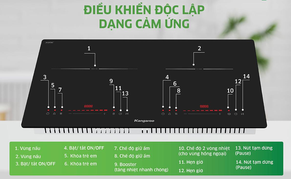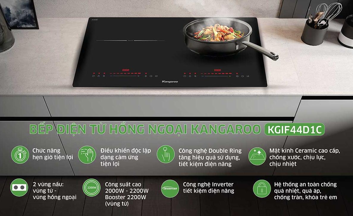 – Tổng công suất của bếp từ Kangaroo đạt 4400W, giúp nấu ăn nhanh, tiết kiệm thời gian.