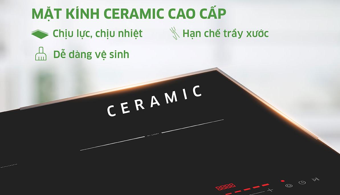– Mặt bếp được làm từ chất liệu kính Ceramic chịu lực, chịu nhiệt tốt và chống trầy xước, giúp dễ dàng vệ sinh sau mỗi lần sử dụng.
