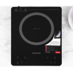 Bếp từ Toshiba IC-20S4PV thiết kế hiện đại, màu đen lịch lãm, 4 góc bo cong mềm mại, tạo điểm nhấn cho không gian sử dụng thêm sang trọng
