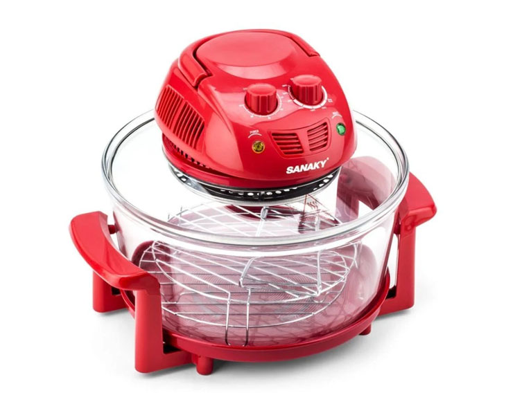 Sản phẩm trang bị quạt đối lưu giúp luân chuyển không khí nóng lan tỏa rộng khắp các ngóc ngách bên trong lò. Nhờ đó, thực phẩm được làm chín nhanh chóng, bên ngoài vàng giòn nhưng bên trong vẫn còn giữ được độ ẩm của thực phẩm.