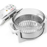 Lò nướng Sanaky VH-148T được làm từ chất liệu thủy tinh dày dặn, giúp người dùng quan sát độ chín của thực phẩm bên trong cũng như dễ dàng vệ sinh sau khi sử dụng. Quai cầm bằng nhựa cách nhiệt, dễ dàng cầm nắm, di chuyển thiết bị mà không lo bị bỏng.