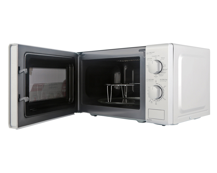 Dung tích 20 lít, khoang lò tráng men dễ vệ sinh, đĩa xoay giúp thức ăn chín đều