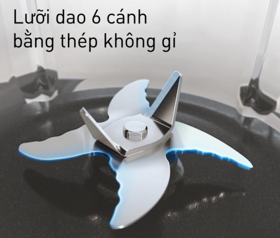 Lưỡi dao 6 cánh và động cơ mạnh mẽ xay nấu nhuyễn mịn nguyên liệu