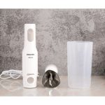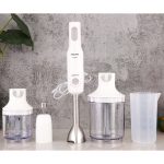 Đi kèm thân máy có thân gắn lưỡi dao, cốc xay sinh tố, que đánh trứng – kem, cối xay thịt, cối xay hạt cho bạn dễ dàng chuẩn bị bữa ăn ngon cho gia đình. Đặc biệt với thiết kế gọn nhẹ, máy cực thích hợp để dùng chế biến món ăn cho trẻ nhỏ, người độc thân, gia đình ít thành viên,…