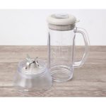 Bộ gồm: 1 cối xay sinh tố lớn dung tích 600 ml, 1 cối xay khô dung tích sử dụng 300 ml (dung tích tổng 450 ml) và 1 bình đựng nước trái cây 500 ml có nắp đậy cực tiện dụng.