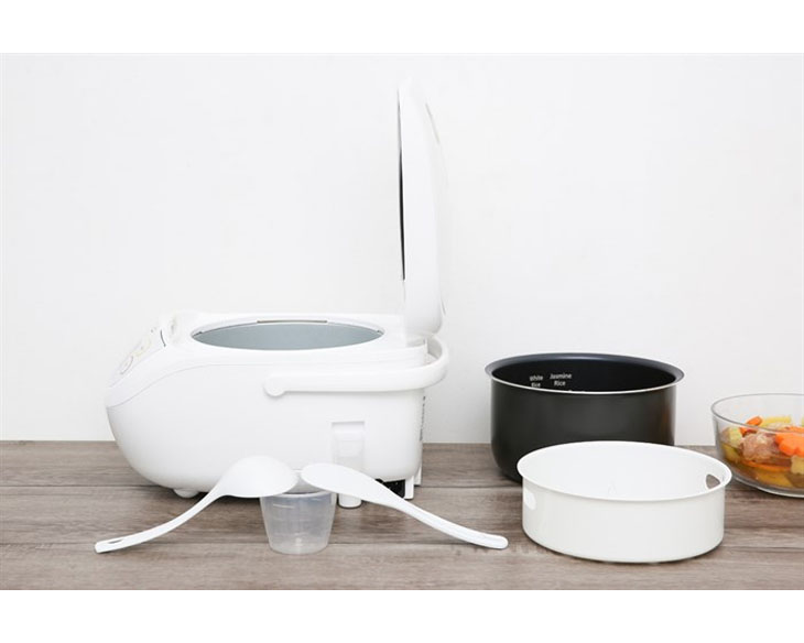 Tặng kèm xửng hấp, muỗng canh, muỗng cơm, cốc đong gạo cho bạn sử dụng nồi tiện lợi, nấu ăn dễ dàng hơn