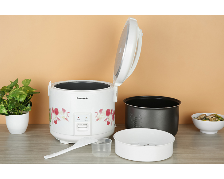 – Nồi cơm điện Panasonic màu sắc trang nhã, có hoa văn nhẹ nhàng thanh lịch, phù hợp nhiều không gian bếp.