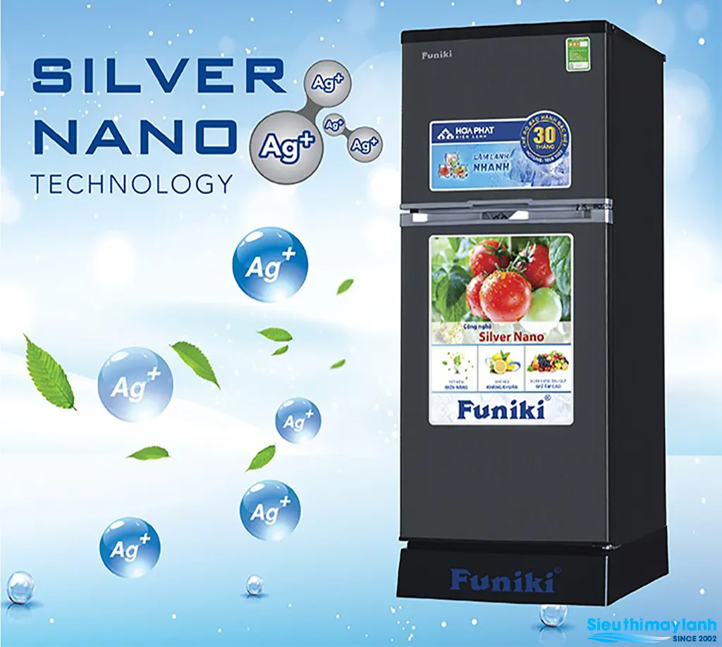 Tủ Lạnh Funiki FR-136ISU sử dụng công nghệ Silver nano. Với kích cỡ phân tử ở mức vi mô, chỉ từ 3 đến 5 nano mét. Nano bạc có khả năng tiêu diệt những vi khuẩn gây hại theo nguyên tắc bao bọc trực tiếp tế bào của vi khuẩn và phá vỡ cấu trúc của tế bào, vô hiệu hóa sự phát triển của chúng.