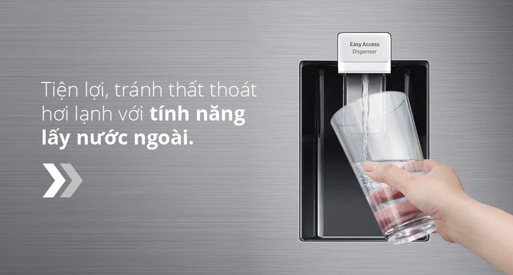 Dễ dàng có ngay những ly nước mát lạnh tuyệt vời mà không cần mở tủ lạnh thường xuyên. Ngăn Lấy Nước Ngoài tiện ích lên đến 2 lít và được thiết kế hoàn hảo bên ngoài tủ lạnh ở vị trí vừa tầm sử dụng.