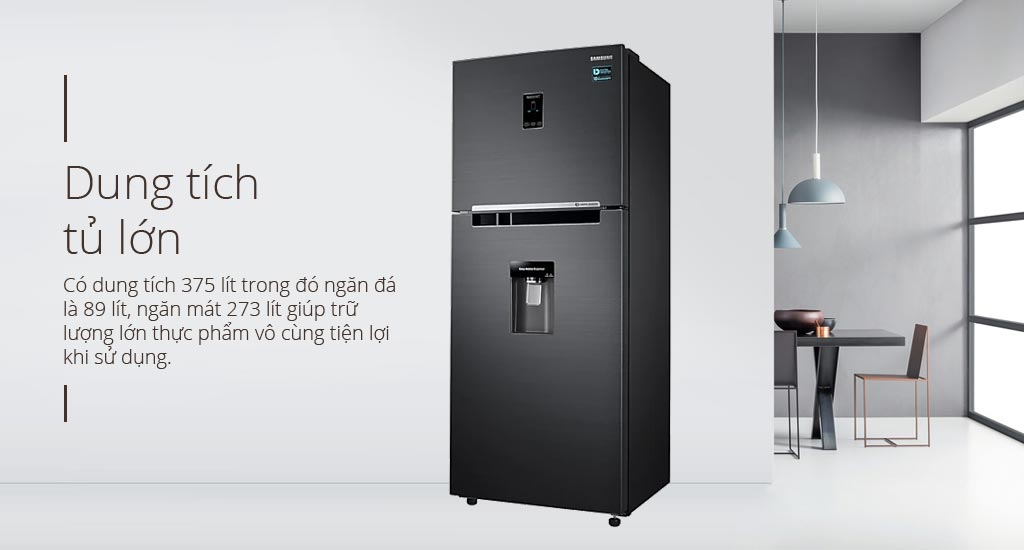 Tủ lạnh Samsung RT35K5982BS có dung tích 375 lít trong đó ngăn đá là 89 lít, ngăn mát 273 lít giúp trữ lượng lớn thực phẩm vô cùng tiện lợi khi sử dụng.