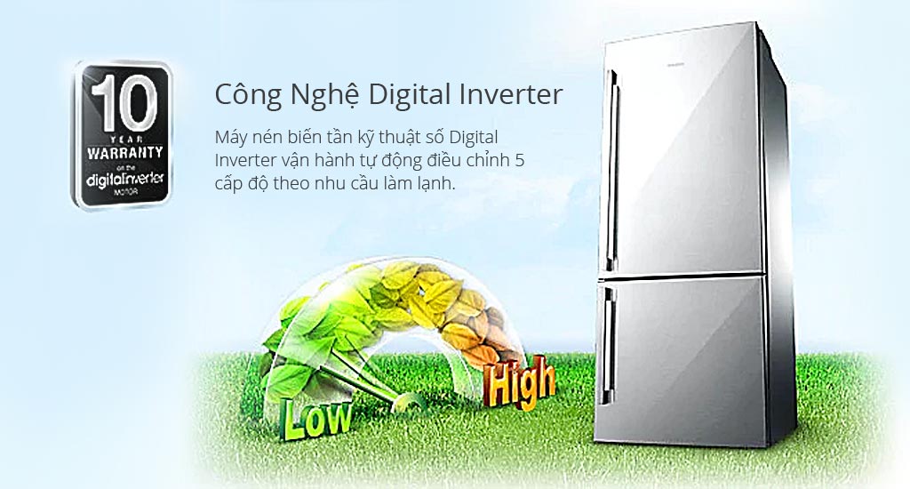 Bên trong chiếc tủ lạnh thời thượng này là bộ máy nén biến tần kỹ thuật số Digital Inverter tự động điều chỉnh nhiệt độ phù hợp và hệ thống đèn LED với ánh sáng dịu mắt gắn tinh tế hai bên cửa tủ, không cần phải mở đèn bếp khi lấy thức ăn. Sự kết hợp này không chỉ giúp bạn tiết kiệm một khoản điện năng đáng kể hằng tháng mà còn hỗ trợ máy vận hành siêu êm ái và bền bỉ theo năm tháng.