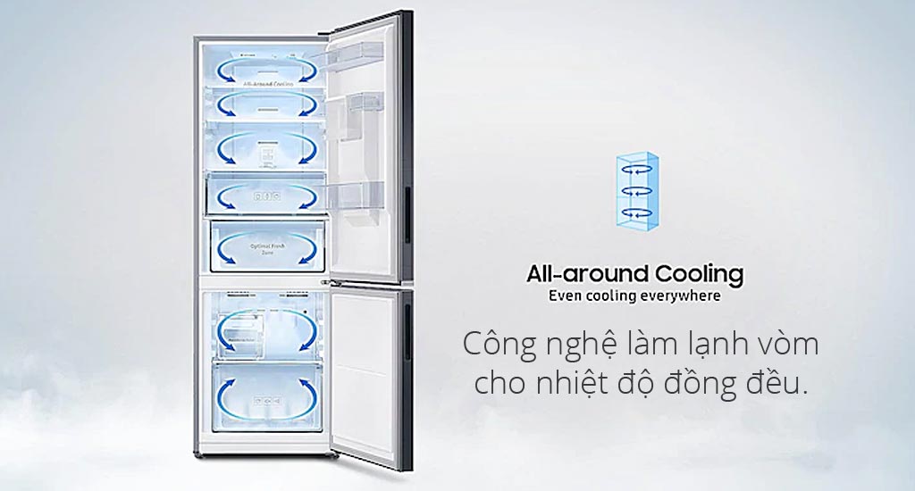 Với các dòng tủ lạnh truyền thống hay gặp hạn chế trong việc phân bố khí lạnh do hệ thống làm lạnh chưa ổn định, dẫn đến việc thực phẩm gần cửa tủ hay bị ôi thiu lãng phí. Nắm bắt được điều đó, các nhà thiết kế của Samsung đã có cải cách vượt trội khi cho công nghệ làm lạnh vòm trên chiếc tủ lạnh Inverter này. Hệ thống làm lạnh vòm cho phép luồng khí lan tỏa đồng đều đến mọi ngóc ngách, nhiệt độ duy trì ổn định giúp bảo quản thực phẩm luôn tươi ngon nhờ vào hệ thống Luồng Khí Lạnh Đa Chiều với các lỗ thông hơi được dàn trải khắp tủ lạnh, giữ mọi thực phẩm tươi ngon trong thời gian lâu hơn.