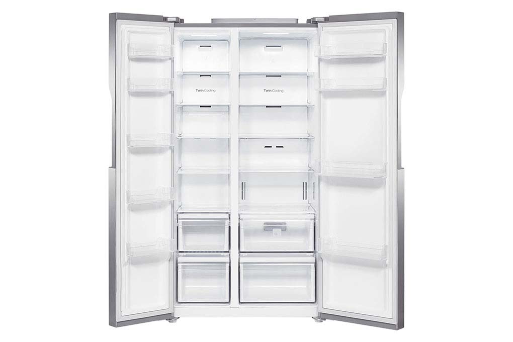 Twin Cooling System được trang bị tiêu chuẩn trên các dòng tủ lạnh side by side Samsung và RS552NRUASL/SV cũng thế, đây là một hệ thống làm lạnh kép hiện đại của Samsung. Hệ thống này giúp tủ lạnh duy trì độ ẩm tối đa, tăng hiệu quả bảo quản thực phẩm và giữ cho thực phẩm được tươi lâu. Ngoài ra hệ thống giúp rau quả tươi ngon hơn, không làm chảy đá viên khiến bạn phải rã tủ lạnh.