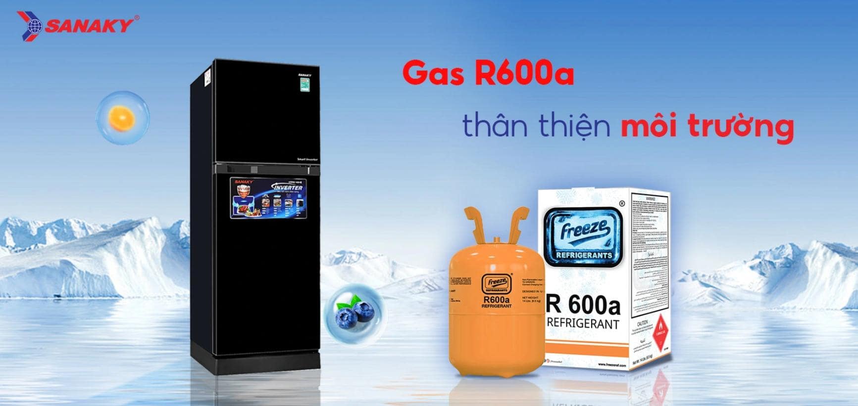 Tủ lạnh Tủ lạnh Sanaky VH-269KD sử dụng Gas R600a với hiệu quả làm lạnh nhanh chóng và giữ lạnh lâu giúp tiết kiệm điện và hoạt động cực êm ái, ngoài ra Gas R600a còn có các ưu điểm như